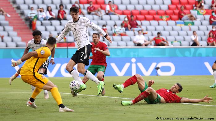 Second half goals from kai havertz and robin gosens added to two portuguese own goals to carry germany to a first win of euro 2020.