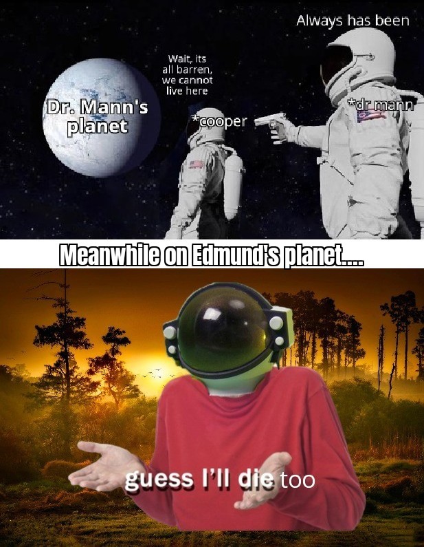 Interstellar Meme - 51 Years Interstellar Know Your Meme. Sit back and have a laugh as you browse through them. Memes are interesting or amusing pictures, videos, or an internet meme is a unique form of media that's spread quickly online, typically vi. Whatever you want to say, there's a meme for that. Here's how to make your own using a variety of options including web and mobile apps. Middle of the work week.